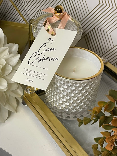 Our handcrafted handpoured candles are made from a sophisticated and luxurious coconut soy wax. Coconut Soy wax is a clean burning, biodegradable wax that we use for all candles and wax melts with unbleached lead-free cotton wicks hand poured in Gardena, CA.